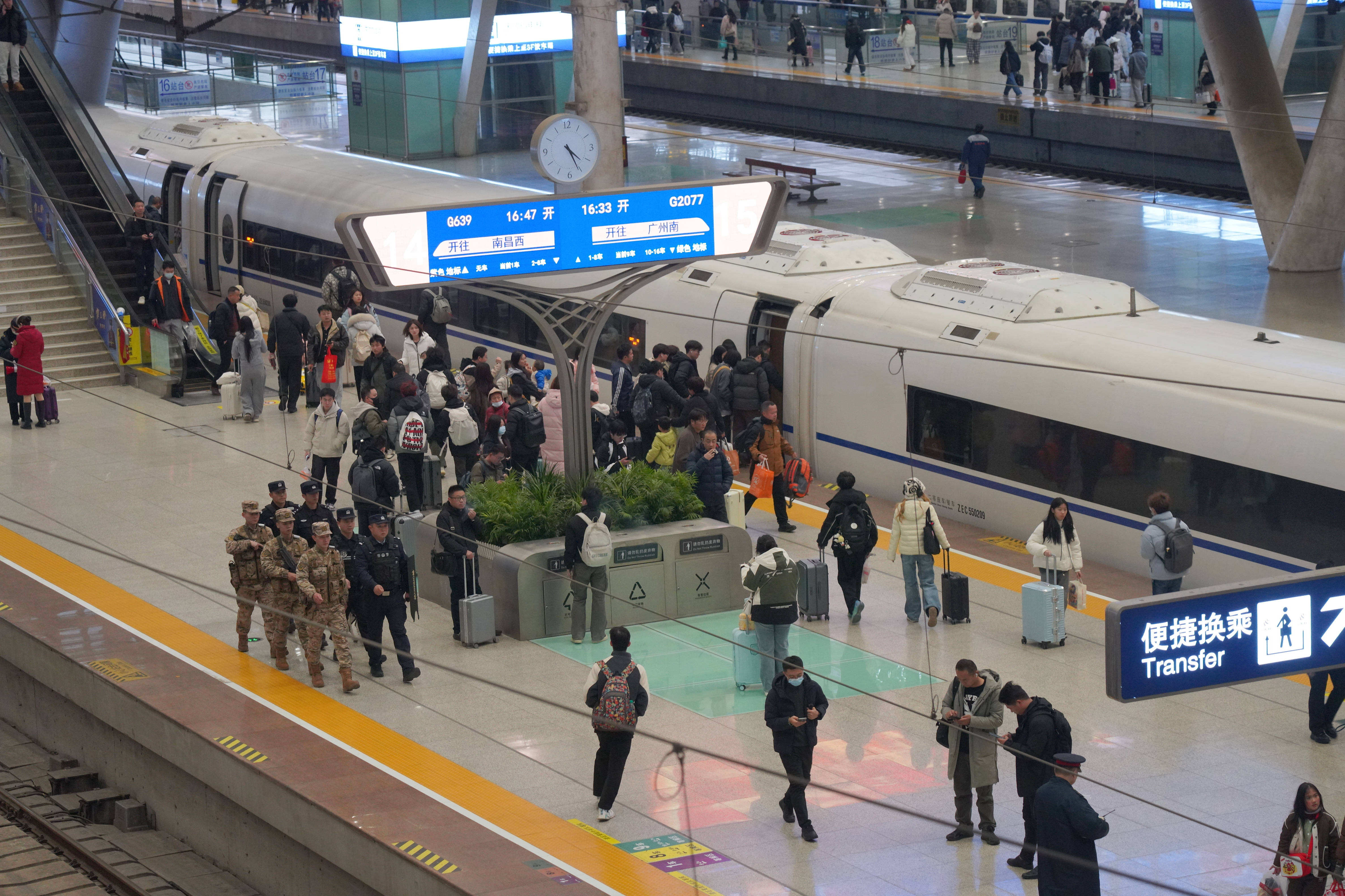 元旦假期即将来临,在九省通衢的湖北武汉,各大客运火车站人潮涌动、热闹非凡;随着列车门缓缓打开,旅客们纷至沓来,映衬出这座“江城”的冬日繁华。