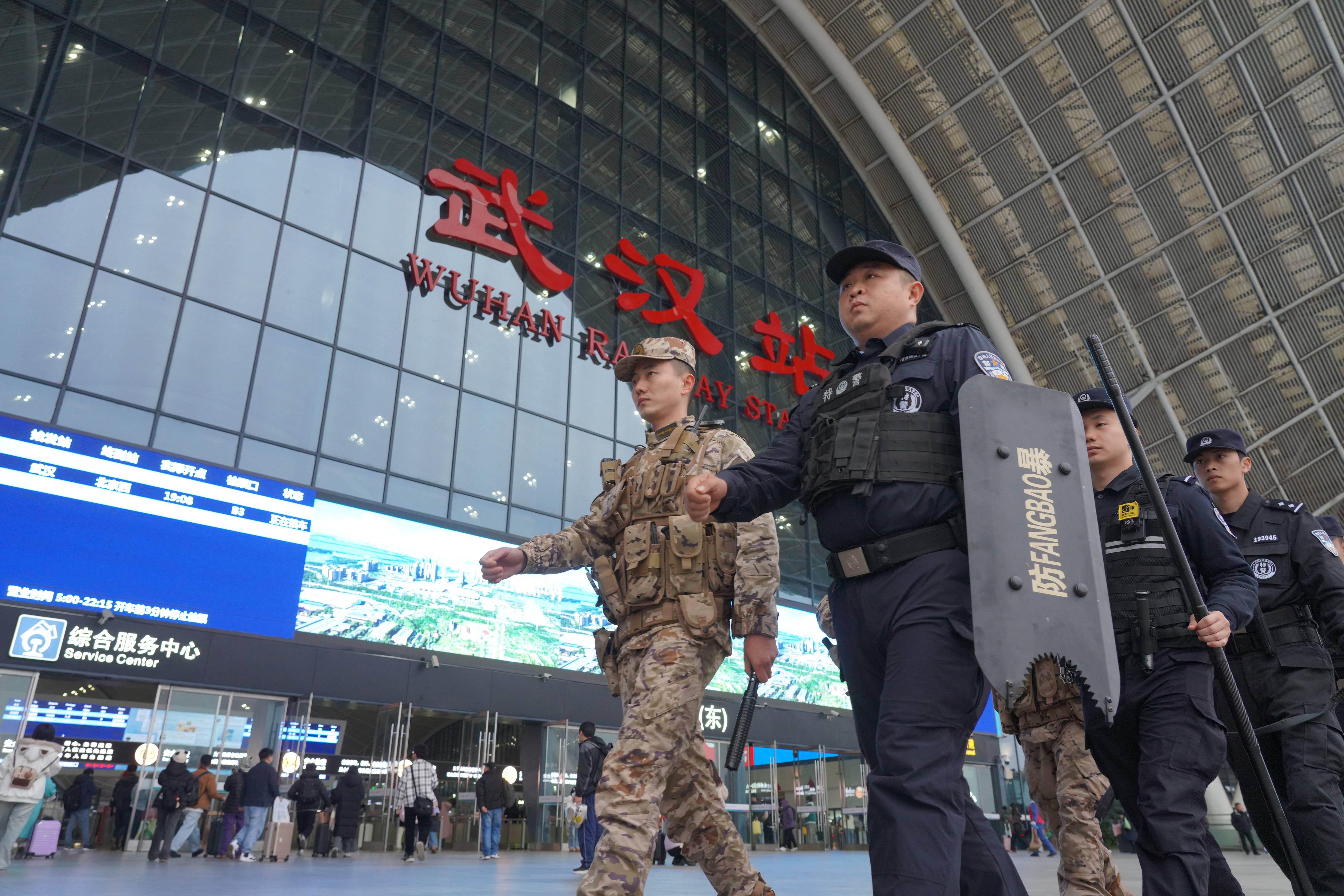 为确保管内铁路治安秩序持续稳定,武汉铁路警方合理调配警力,组建47个党员先锋队(青年突击队)进站、上车、入沿线,深入排查整治各类公共安全隐患,严厉打击“盗抢骗”等违法活动,强化站车查缉工作力度,加强线路巡防巡控,大力整治辖区铁路治安问题,为广大旅客元旦假期平安出行创造良好的治安环境。