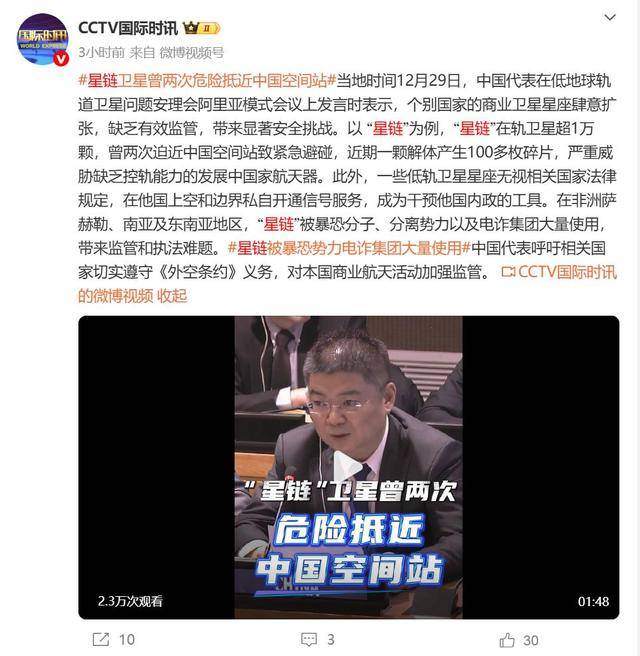 国际社会已开始关注这一问题。2025年12月,中国代表在低轨道地球卫星问题安理会会议上发言时表示,个别国家的商业卫星星座肆意扩张,缺乏有效监管,带来显著安全挑战。