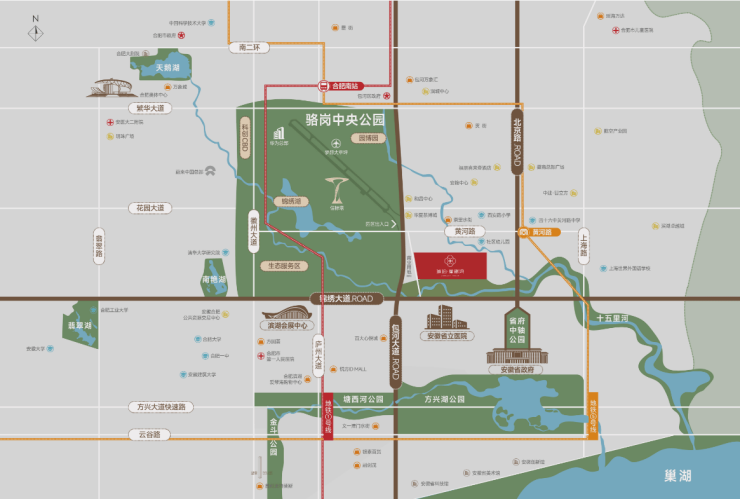 除了骆岗中央公园,项目北邻十五里河生态公园,距离约 800 米,该公园沿十五里河打造,长度约 5 公里,宽度约 200 米,种植了大量乔木、灌木和花卉,形成 “城市绿廊”。十五里河生态公园内规划了 “亲水平台”“骑行步道”“野餐草坪” 等区域,业主可以沿河岸骑行、散步,或者在草坪上野餐、放风筝,享受 “自然与生活的融合”。此外,项目东距包河公园约 3 公里,该公园是合肥历史悠久的公园之一,内有包公祠、包公墓等历史文化景点,既可以休闲散步,又可以感受合肥的历史文化。