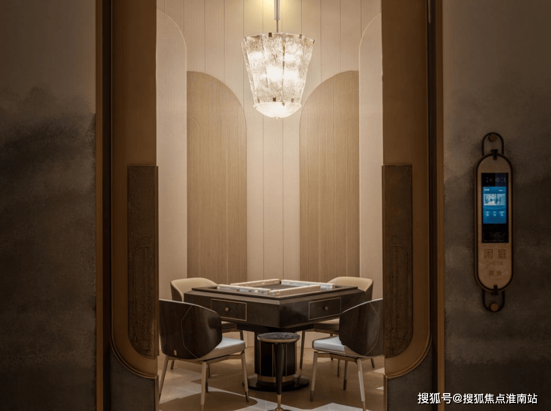 私宴厅&棋牌室承载了业主宴请、聚餐、洽谈、品茗、娱乐等多元社交场景。私宴厅当中悬挂的石材,来自项目团队多番挑选,来自一个奢石展馆里的孤品,不仅拥有昂贵的蓝泽,天生的羽毛状纹理更是罕见!