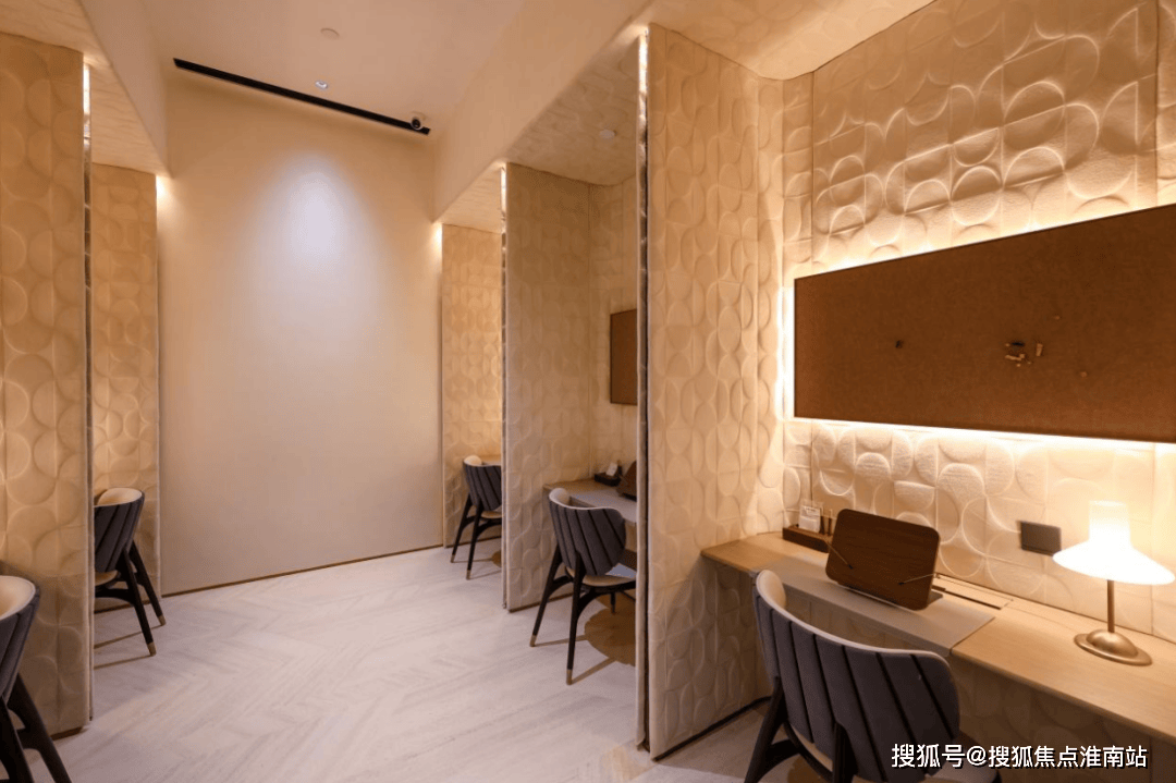 阅读室,分为了公共阅读区、独立自习区,是未来业主阅读、办公的绝佳场所。其中以达芬奇飞行器手稿为灵感,打造的“木鸢溯风”艺术装置,运用非遗技艺带来浓厚的人文氛围。最大的亮点,当属为自习室配置了弥散氧设备,这在市场上是非常罕见的!可快速提升空间含氧量,让学习更有精神。