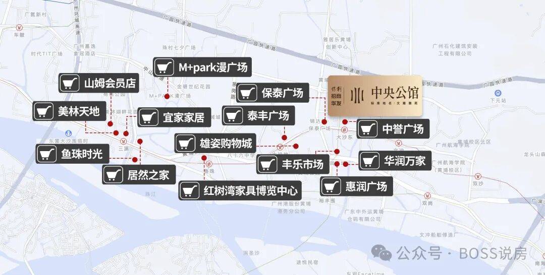 周边 3km 范围内有惠润广场、黄埔潮楼名店城、星荟城购物广场、美林 M・LIVE 天地等。