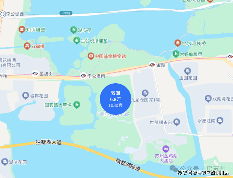 北侧直面金鸡湖,出门即地铁5号线,周边被国宾一号、铜雀台等10万+豪宅环伺,完全演绎“出则繁华、入则宁静”。