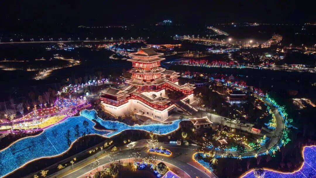 300余位NPC穿梭互动带你瞬间“入戏”,水幕与千年非遗“打铁花”巧妙结合,金色光雨绽放在夜色之中。还有临湖剧场·幻彩幕舞、水上光影·星河流光、锦云楼畔·南北幻境三大主题奇幻光影大秀。