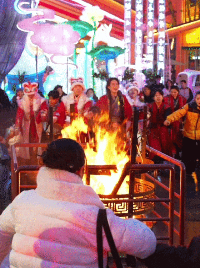 穿行于流光溢彩之间,还有喷火、打铁花、飞天凤凰、“飞碟”仙女撒花等,让人感受最炽热的年味。