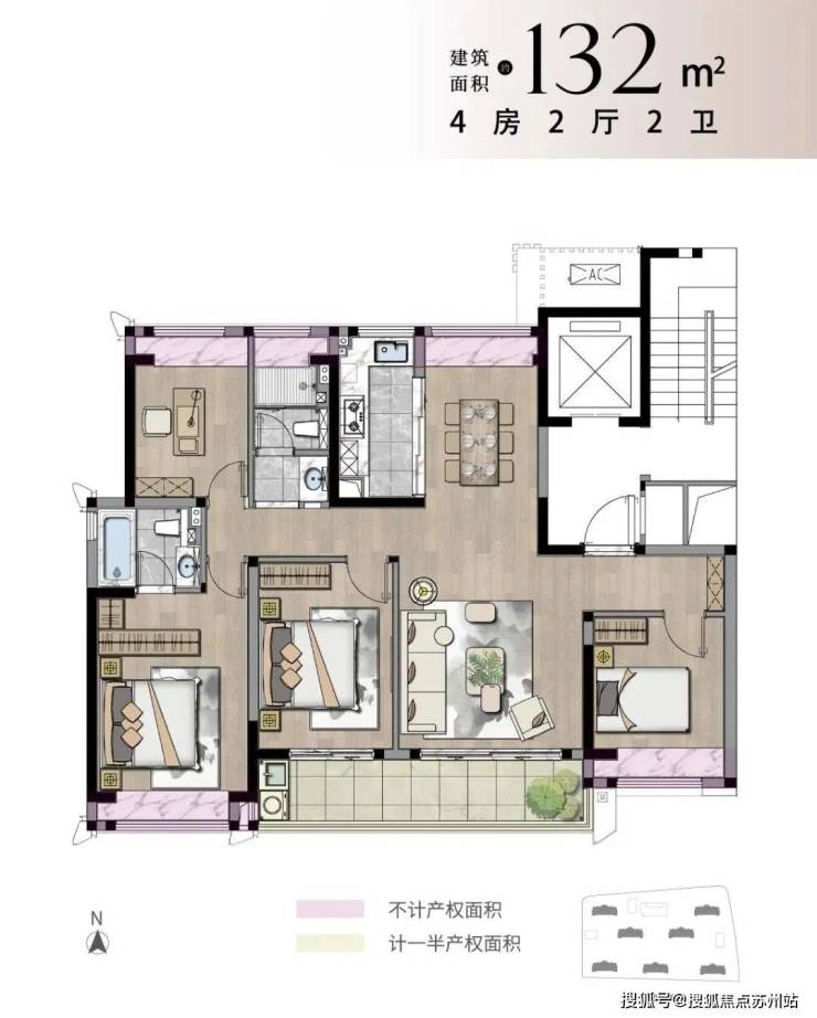 恒棠澜轩,位于高新区狮山商务创新区昌普路南吴越路西,由苏高新集团与新高城发联合开发。项目总建筑面积4.66万方,容积率2.0,绿化率高达37%。规划了7栋17层的小高层住宅,共计233户,户型配置均为约132㎡的四房两厅两卫,采用两梯两户设计,精装交付,装标不低于2000元/㎡。车位配比1:1.76,物业服务由苏州科尚物业提供。成交楼面价17000元/㎡,备案均价34993元/㎡。