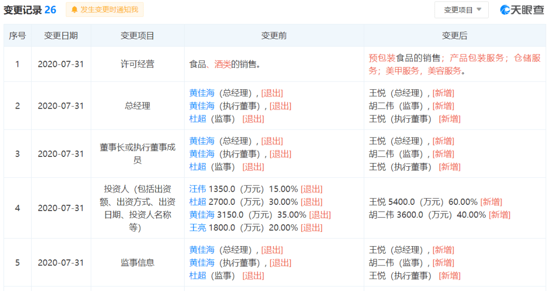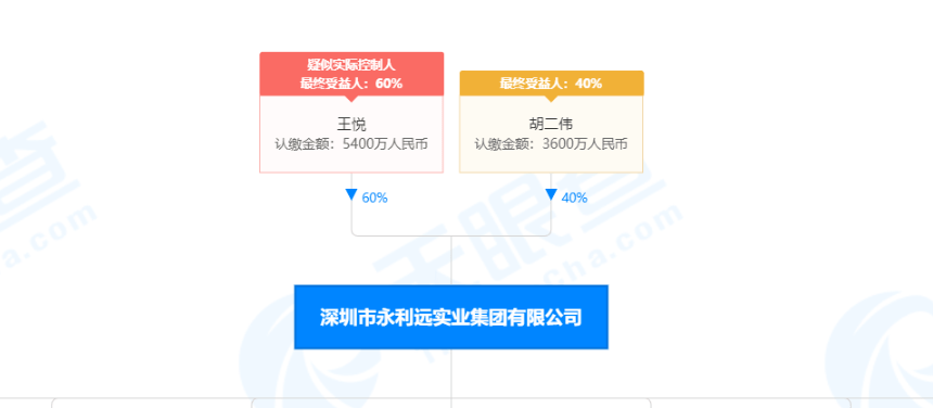 据天眼查APP显示,深圳市永利远实业集团有限公司成立于2019年7月2日,注册资本9000万元,王悦担任法人、执行董事,总经理,持股60%,该公司对外投资公司有15家。该公司在今年7月31日出现了人员变动,该公司法人由黄佳海变为王悦。