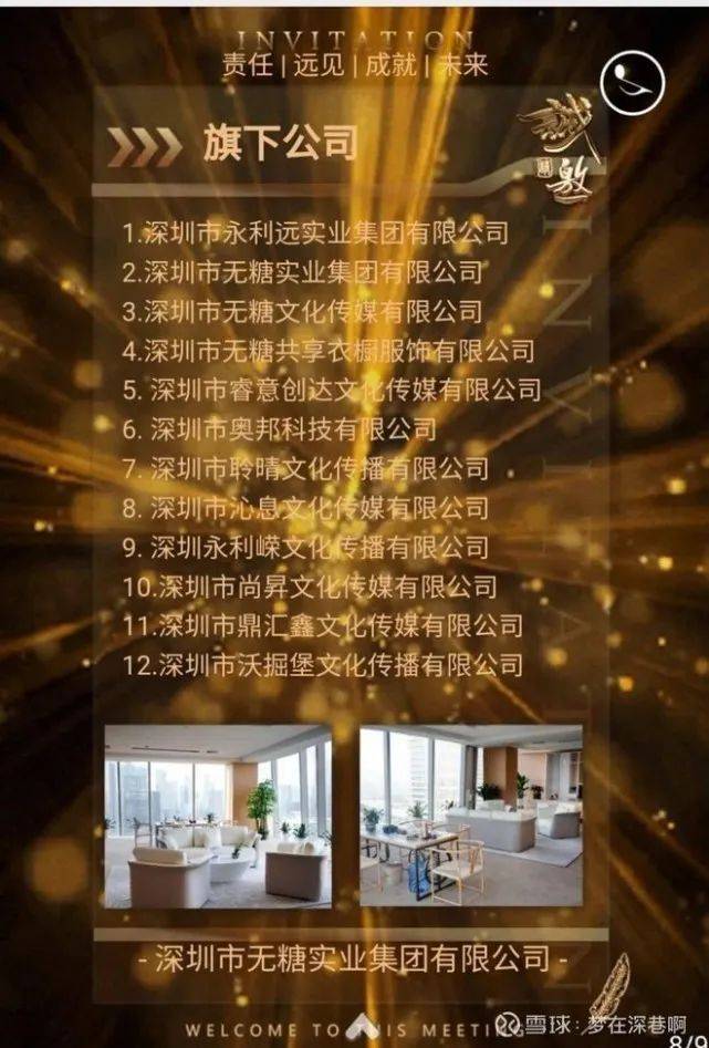 另外,李女士说该公司旗下有很多分公司,而且根据查看发现,公司法人总是在不停变更,以避开法律责任。事情到了这个地步,李女士才感觉到自己是被深圳市无糖实业集团有限公司欺骗了,希望通过广大媒体和社会的关注,曝光此公司和老板的“欺诈行为”,并能够给自己一个合理的说法,退回属于自己的款项;同时也希望更多的人能够知道此公司,避免再上当受骗。